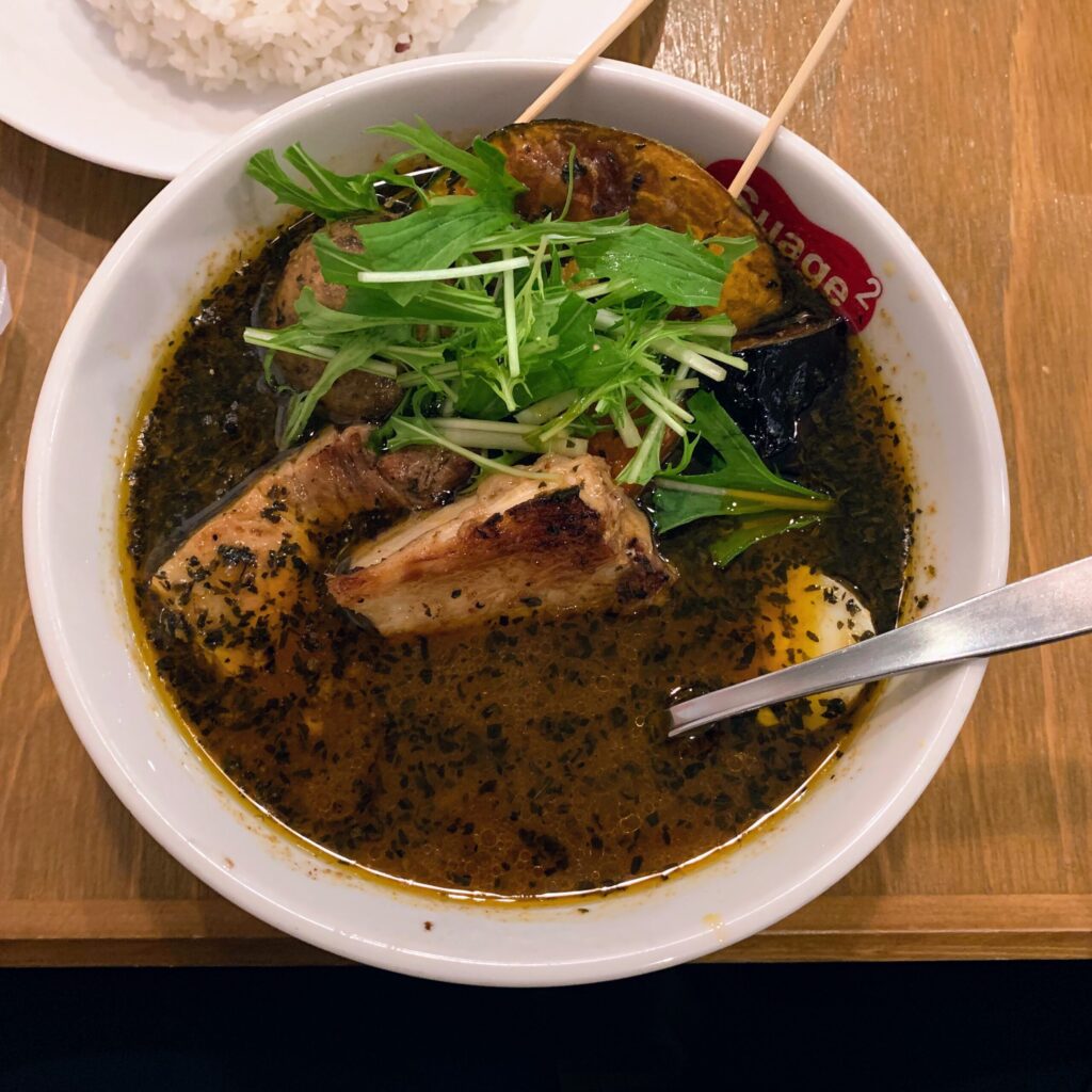 The story of soup curry begins in the 1970s at a Sapporo coffee shop called Ajanta, where they served something called “yakuzen curry,” which in English means medicinal curry. This original creation drew inspiration from Chinese and Korean medicinal herbal soups mixed with Southeast Asian and South Asian curry traditions from places like Indonesia, Thailand, India, Nepal, and Sri Lanka.