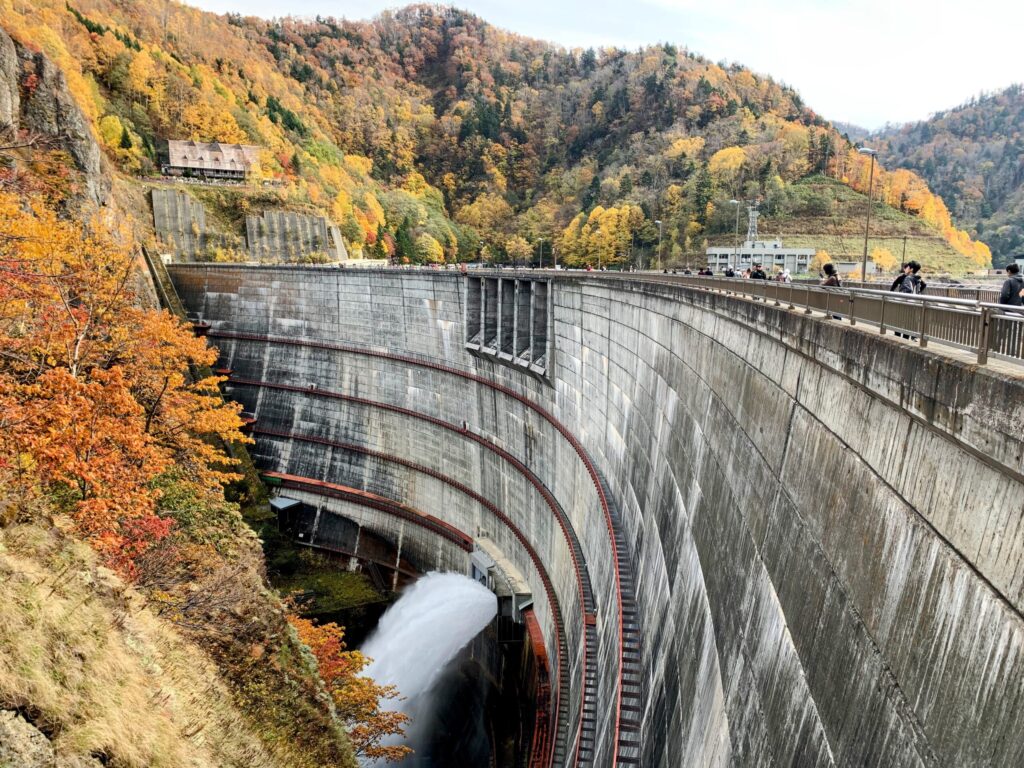 Between June and October, the dam puts on a show with tourist water discharge from 9:00 to 16:00 daily. On weekends and holidays, this starts at 9:00; on weekdays, it begins at 10:00. Watching thousands of gallons of water thunder down from that height while framed by autumn foliage is genuinely spectacular — it’s power and beauty in the same frame. The mist created by the discharge catches the light in the morning sun, adding an almost ethereal quality to the scene.