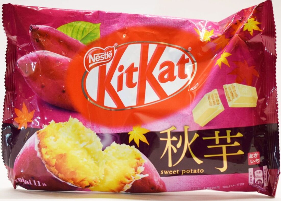 Sweet potatoes hold a special place in Japanese culture, particularly during the fall season. Known as “satsumaimo,” these purple-skinned, golden-fleshed tubers are celebrated not just as a healthy snack, but as a symbol of autumn comfort food. From tempura to cake to ice cream, sweet potato finds its way into countless Japanese confections – so naturally, Kit Kat had to get in on the action!