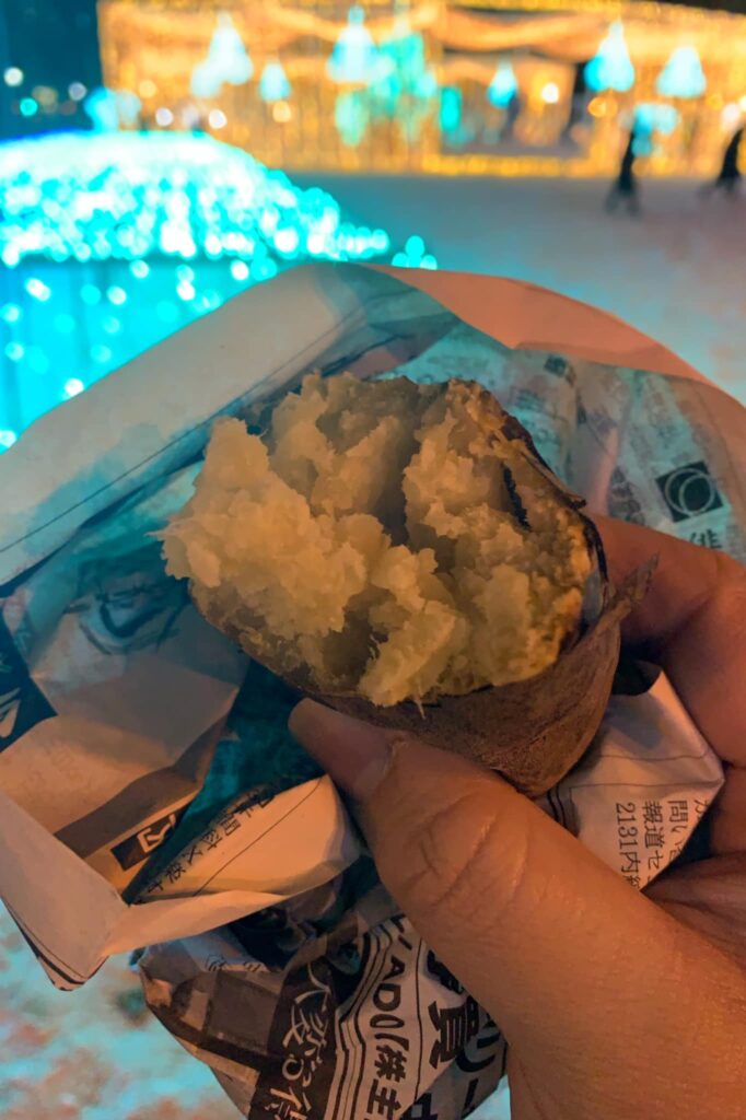 When I spotted this package at the Don Quijote, my eyes were immediately drawn to the purple and warm golden-orange packaging adorned with illustrations of roasted sweet potatoes. “スイートポテト” – sweet potato – instantly transported me to autumn memories of street vendors selling yakiimo (roasted sweet potatoes) from their trucks, their melodic calls echoing through Japanese neighborhoods as the leaves begin to turn.