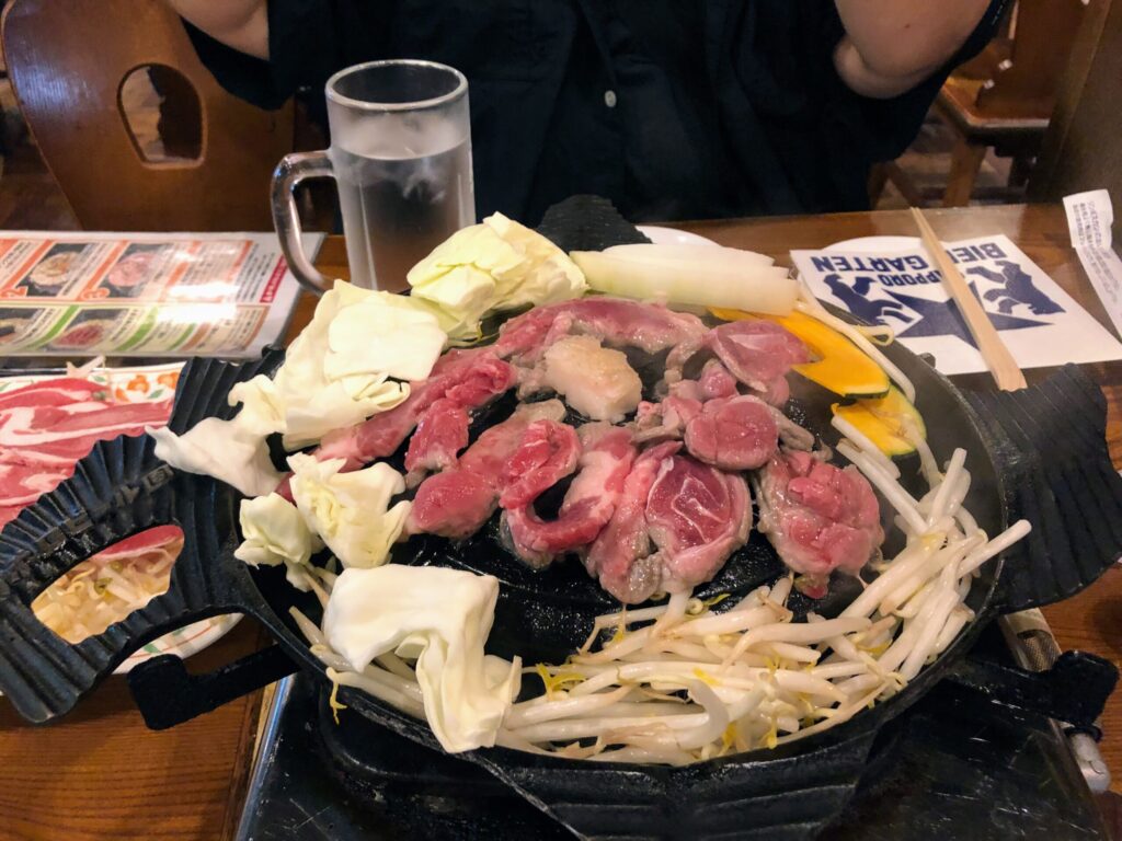 Jingisukan (成吉思汗) – Grilled mutton cooked on dome-shaped metal plates, named after Genghis Khan. The sizzling meat provides both sustenance and warmth as you stand around the cooking plates.