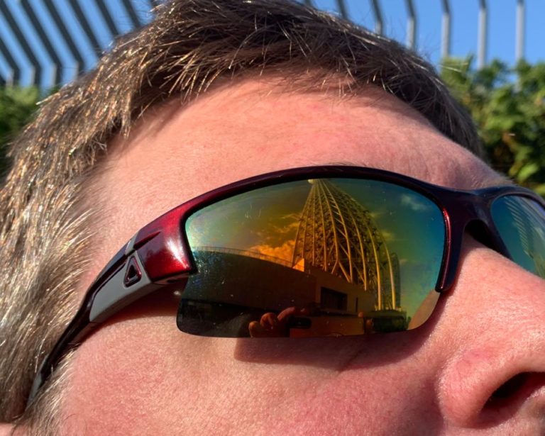 If you happen to go after 5 pm, projector displays will turn on and play a film right on the top half of the glass. The display roughly covers 255 degrees of the Tembo Deck, which is a rather fun way to watch a film as you walk around.